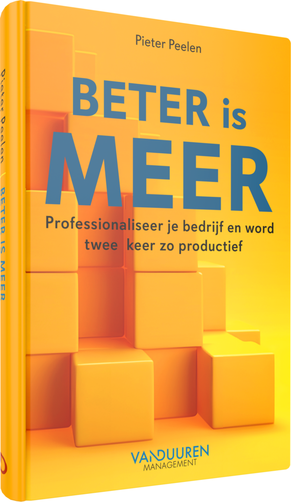 Wist je dat 80 procent van de ondernemers worstelt met productiviteit zonder dat zelf te weten? Dat levert ongewild een hoop gedoe op. Het kost bovendien schrikbarend veel geld, zeker als je team groeit naar 15 tot 25 medewerkers of meer. Maar er bestaan ook bedrijven die juist bijzonder productief zijn. Zij doen slechts één ding anders: structurele aandacht besteden aan een vaste set van managementwerkwijzen. In Beter is meer ontdek je waar de hele set uit bestaat en hoe je die zelf kunt invullen. Hiermee kun je binnen een jaar de productiviteit van jouw bedrijf enorm verhogen!